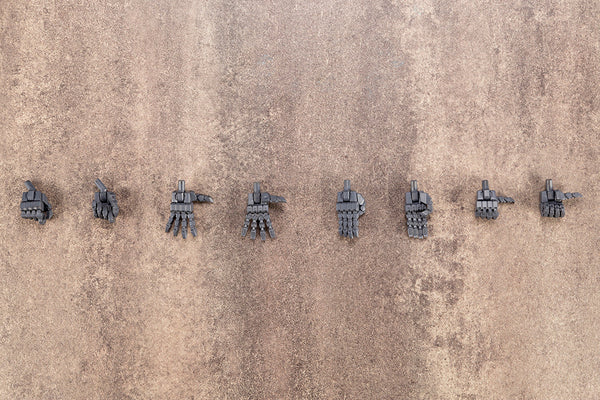 A KOTOBUKIYA Japanese import! Would you like more options to customize your model kits? Look no further than the Modeling Support Goods series from Kotobukiya bringing you all sorts of cool additional parts, weapons, and display pieces. The latest addition to the line is the WILD HAND 2 set bringing you eight new hand parts in four different configurations! Gripping hands are perfect for posing with bladed weapons such as swords and spears (and two different angles are possible with the interchangeable swing axis parts), two different Open Palms offer hand chopping, landing poses, and more, and Thumbs Up can be posed on a model to point to itself, giving a signal/order, or just offering a gesture of support. Use the Wild Hand 2 set in combination with other Modeling Support Goods parts and weapons from Kotobukiya for unlimited options in building, posing, and equipping your Frame Arms, Border Break, and other robot models!