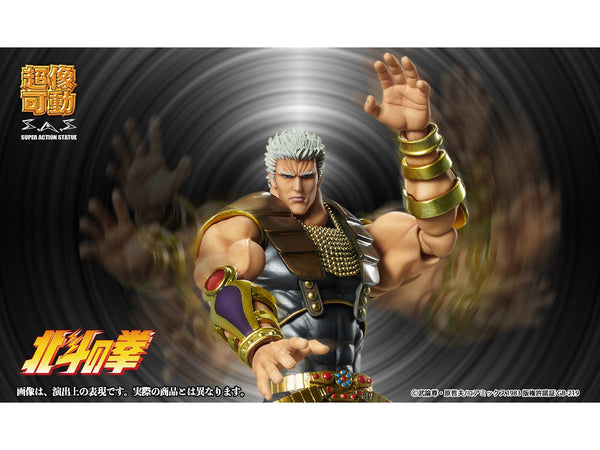 From the classic manga and anime series Fist of the North Star comes a Super Action Statue figure of the incredibly powerful Raoh! Standing a whopping 8 inches tall, this articulated figure includes an alternate facial expression, interchangeable hands, a punching effect, and a figure stand to display him on.