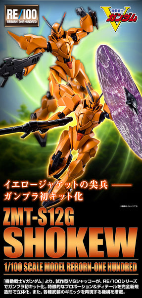 Based on the Mobile Suit Victory Gundam anime, this 1/100 scale model kit features its same hornet design, from the v-shaped antenna to the yellow-orange and black color scheme. It comes with its beam rotor, rifle, and saber, along with its dual shoulder beam guns and eye parts to recreate its open and closed camera lens.