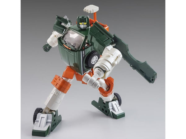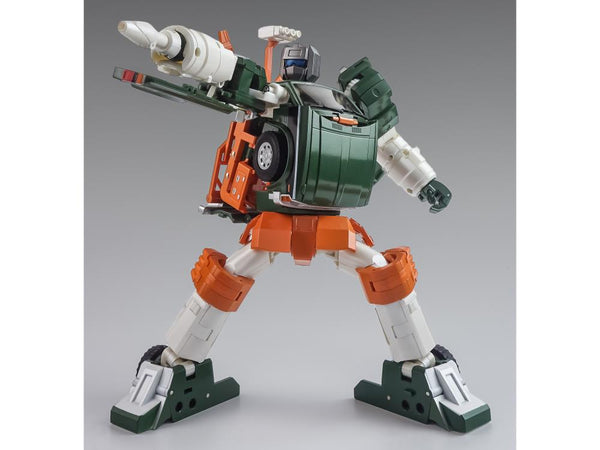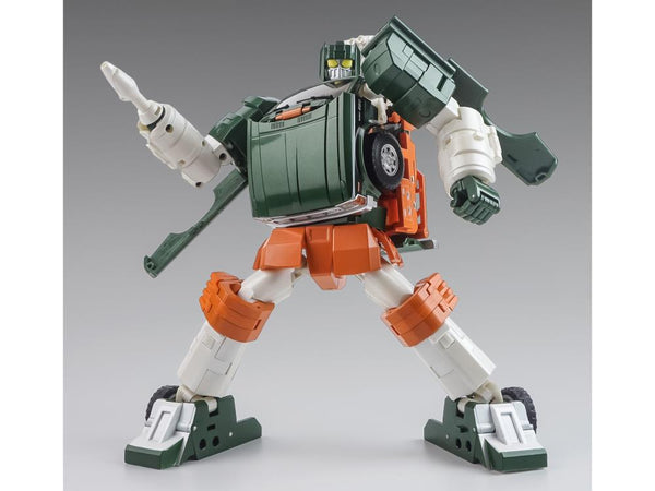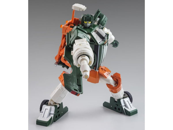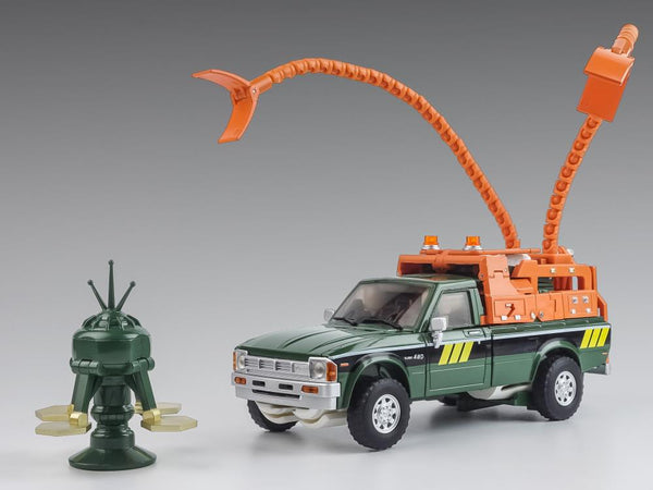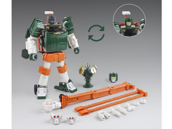 X-Transbots Paean stands about 8 inches tall in robot mode and transforms into an off-road towing truck. Paean contains die-cast in the joints and feet and features rubber tires, clear car lights, clear light gray tinted windows, newly designed fists, and a shining polished car shell.