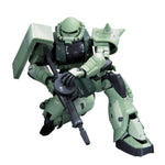 Based on the Mobile Suit Gundam anime, the MS-06F Zaku II model kit is in 1/144 scale and becomes a fully articulated figure once complete. The MS-06F Zaku II also includes various decal stickers that allow you to customize how your Zaku II is identified.