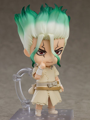 From the anime series "Dr. STONE" comes a rerelease of the Nendoroid of the scientist with superhuman intelligence and a wealth of knowledge, Senku Ishigami! He comes with three face plates including his standard expression, his serious expression for doing experiments and his mischievous laughing expression. He comes with a clay jar of stone formula, a glass bottle of medicine and a stick of cotton candy as optional parts. Enjoy recreating Senku's journey to rebuild civilization with science in Nendoroid form! Be ten billion percent sure to add him to your collection!