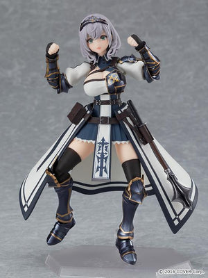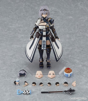 From the popular VTuber group "hololive production" comes a figma action figure of hololive 3rd Generation fluffy, meatheaded knight VTuber Shirogane Noel! She comes with three face plates including a smiling face, a face with closed eyes and an angry face. Her mace, a beef bowl, a pair of sunglasses, a rattle and a baby bottle are included as optional parts. A left hand part with a ring on her ring finger is included too!
