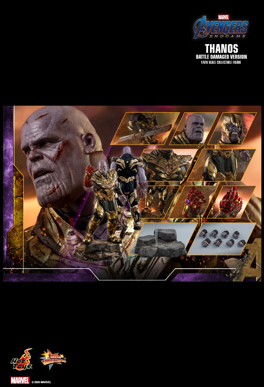 As a continuation of the incredible collectible series of Avengers: Endgame, Sideshow and Hot Toys present the Thanos (Battle Damaged Version) Sixth Scale Collectible Figure highlighting severe damages on armors inspired by the climactic battle on Earth from The Infinity Saga!