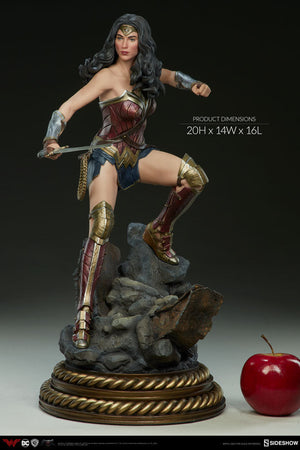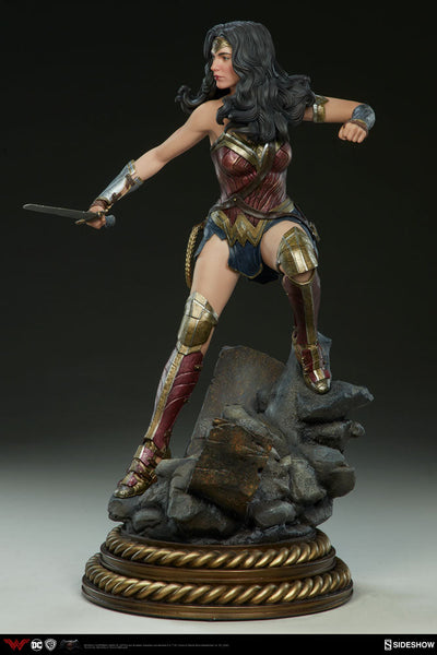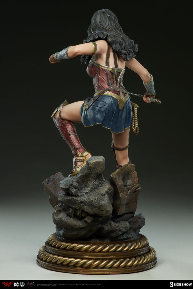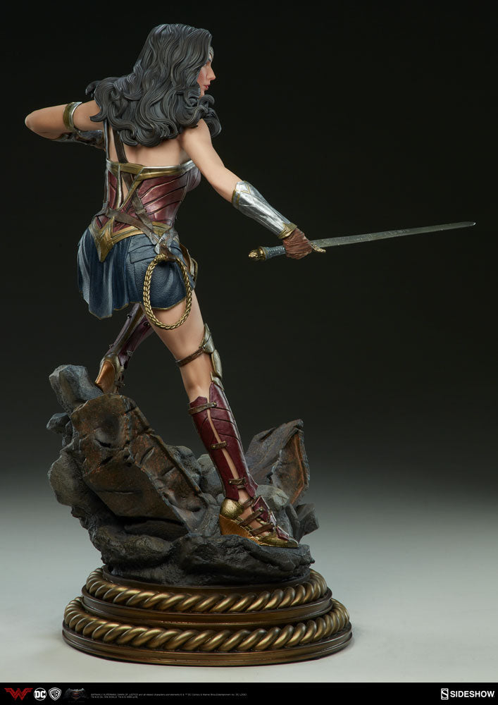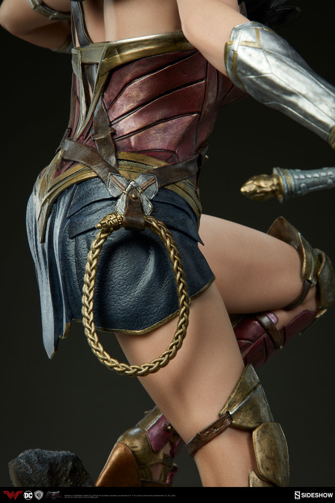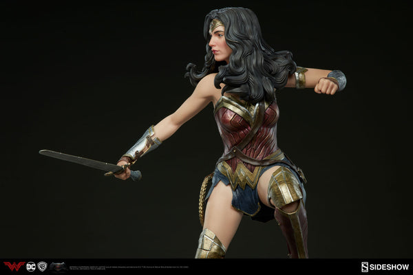 We are proud to announce a new depiction of Wonder Woman as portrayed by Gal Gadot in Batman v Superman: Dawn of Justice! Expertly crafted by our in-house team and rendered with supreme movie-accuracy, she is a proud addition to our lineup of DC Comics Premium Format™ Figures. Standing 20” tall, this awe-inspiring new figure depicts everyone’s favorite Amazonian Princess in a suitably dynamic pose; stepping into action, sword drawn, and prepared to face any foe!