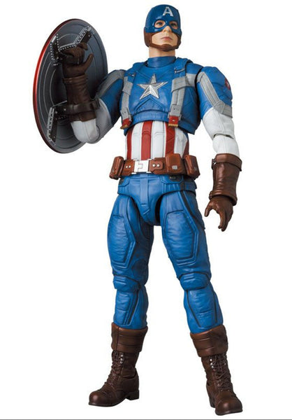 With three distinct head parts, two variations of the shield, a display base, and a poseable figure stand included, you have everything you need to showcase Captain America in his full glory. The head sculpt, a true labor of artistry, reflects the attention to detail and devotion to accuracy of the MAFEX line.