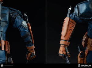 Sideshow’s proud to pay homage to the merciless man hunter Slade Wilson with this new museum quality Premium Format™ Figure, depicting this relentless assassin in his trademark orange and blue attire and one-eyed mask, but in our own signature hyper-real style.