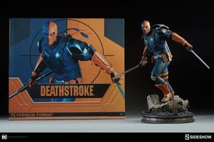 Cold, calculating and intimidating, this Deathstroke Premium Format™ Figure is sure to add a touch of menace to any DC Comics rogues gallery!