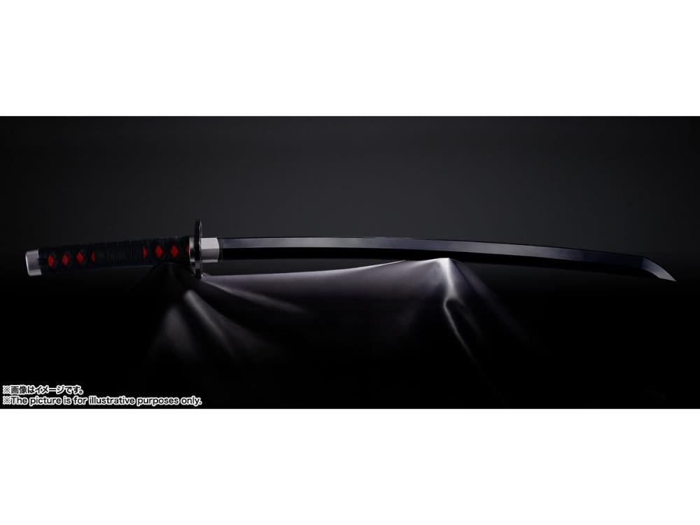 Tanjiro's blade was created to capture the beauty and feel of a real-life blade using carefully molded plastic. It features fine details, such as a tsuba guard painted in a metallic black for contrast. The sword also plays back more than 50 sounds from the show, ranging from the Demon Slayers theme song to samples of Tanjiro Kamado's dialogue.