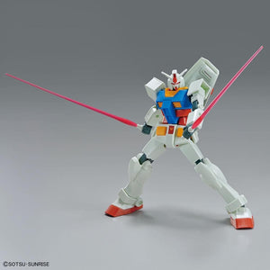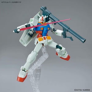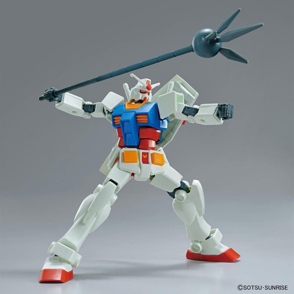 The Entry Grade RX-78-2 Gundam, based on the anime series Mobile Suit Gundam, is the ultimate introduction item for GunPla. The plastic is color molded requiring no paint, snaps together requiring no glue, uses easy twist off parts requiring no tools, and now doesn't even require stickers for tiny details! The RX-78-2 Gundam (Full Weapon Set) comes with Beam Rifle, Shield, two Beam Sabers, Hyper Bazooka, Beam Javelin, and Gundam Hammer!