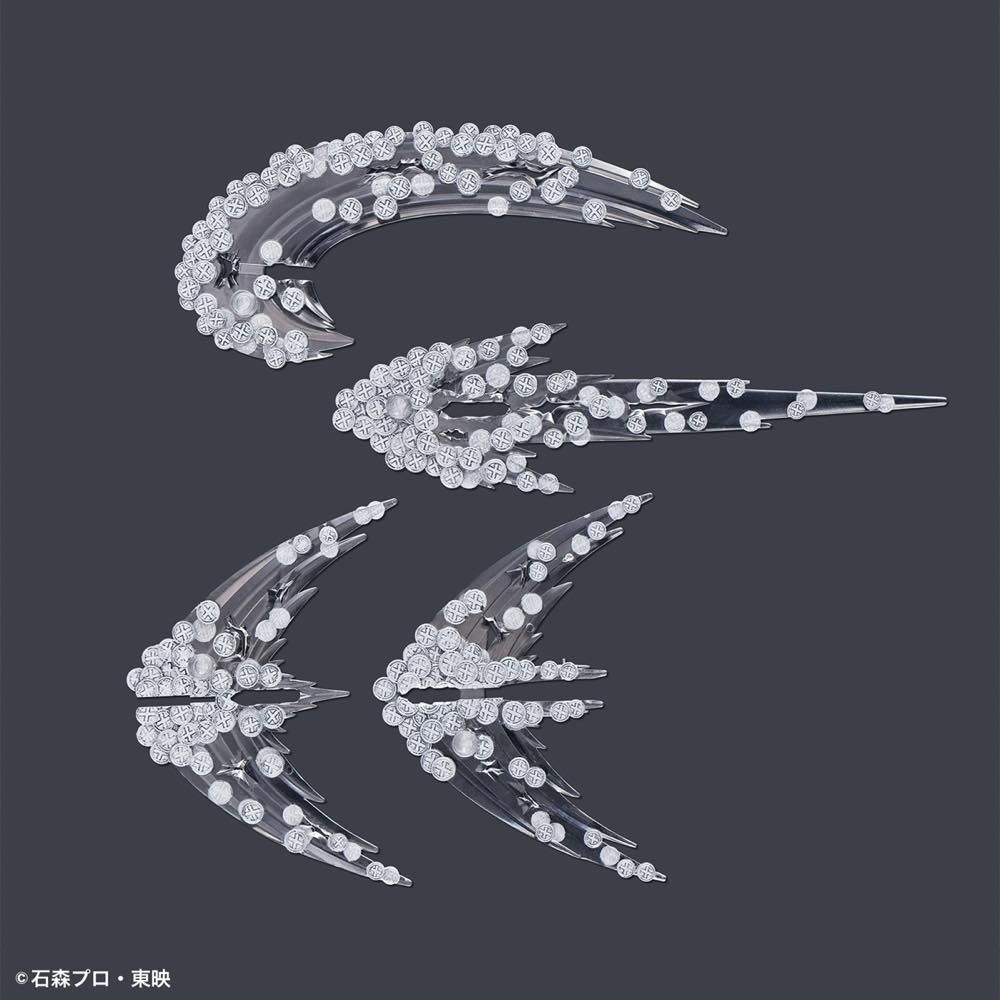 Kamen Rider OOO is now available as the 14th installment of Bandai's Heisei Rider plastic model project, "Heisei Rider Project Beginning"! Kamen Rider OOO is equipped with the biggest feature of the combo-change gimmick; his chest crest, which would be difficult to do in separate colored parts, is reproduced with a tampo-printed part for accuracy. He comes with a full range of accessories such as Traclaws, Medajaribur and Batter Legs! Three Cell Medals that can be attached to the Medajaribur are also included. Get this mighty hero for your own collection now!