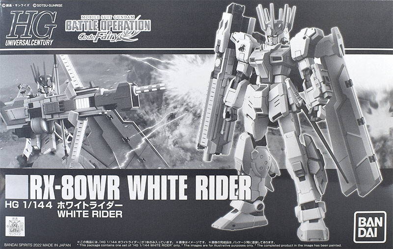 From the Mobile Suit Gundam Battle Operation Code Fairy mobile game comes a High Grade Universal Century 1/144 scale exclusive model kit RX-80WR White Rider! Recreate its normal state or ZEUS activation state using the included marking stickers.