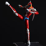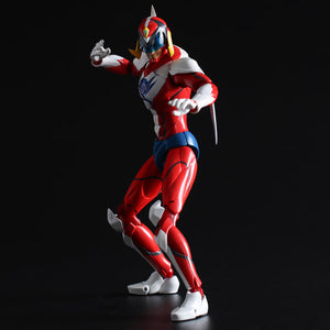 From Sentinel. Reaching beyond space and time, four superheroes who fought for peace have gathered again in the modern era. The new battle of legendary heroes has begun! Polimar... A detective by day Takeshi Yoroi's cracks down on crime and evil on the street with his secret identity Hurricane Polymar! He returns in the new Infini-T Force Anime featuring many of the legendary anime superheroes in the ultimate battle between good and evil. Will come fully articulated, and can be posed in his many signature-poses seen in the animation. LED lights are built into the chest for a light-up gimmick. Main body, closed hand*2, open hand*2, knife hand*2, display stand, test battery(LR41 button cell)*2