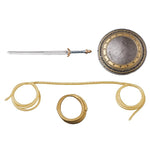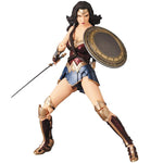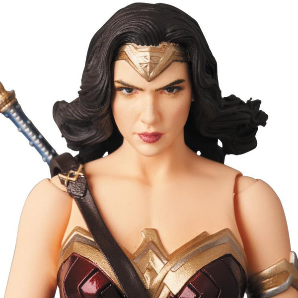 As seen in "Justice League," Wonder Woman joins the MAFEX action figure lineup from Medicom! She's about 6.30 inches tall and is fully posable for heroic poses; she comes with two interchangeable heads (one with a more intense expression and windblown hair), her sword, shield, and her Lasso of Truth (coiled up and uncoiled for use). She also has the Mother Box!