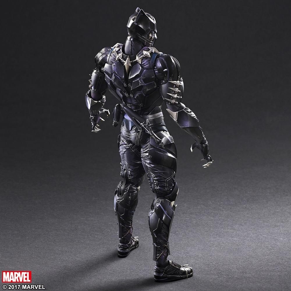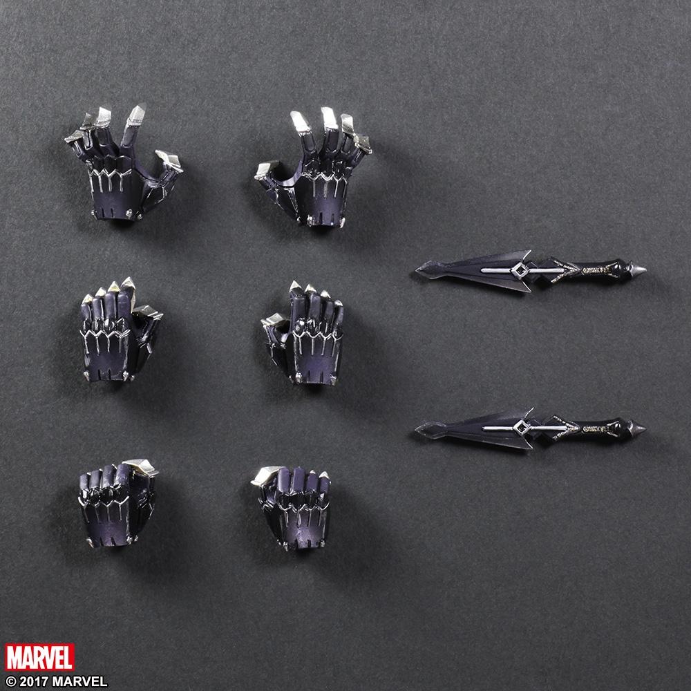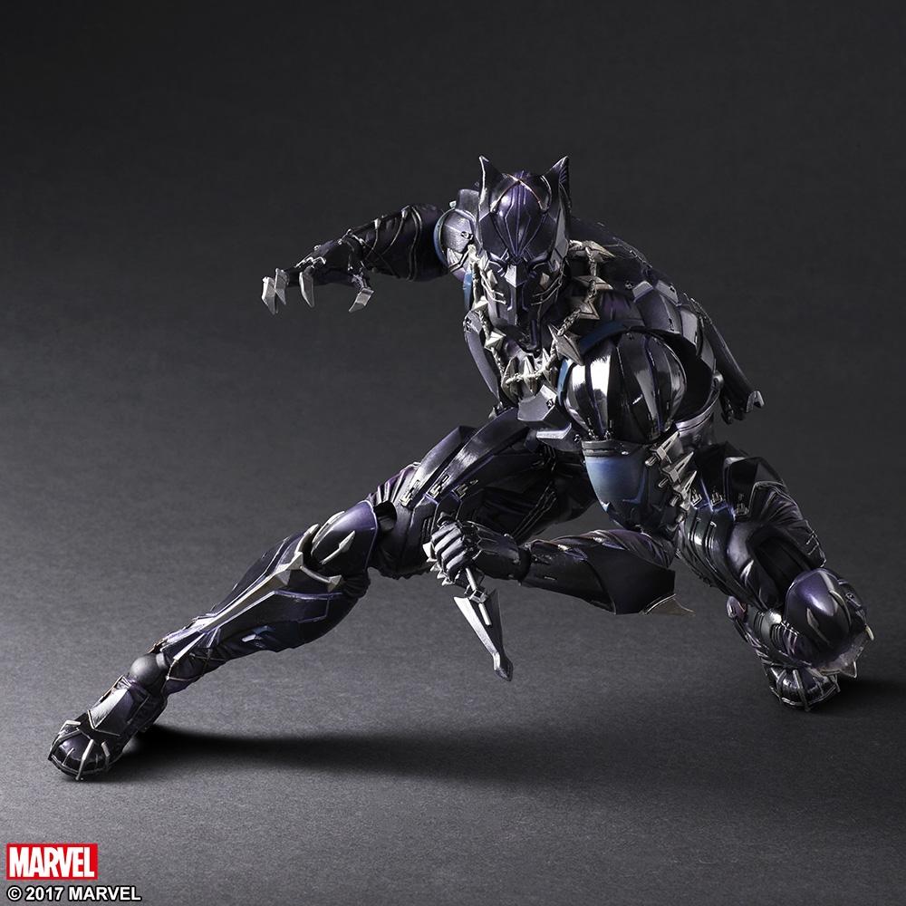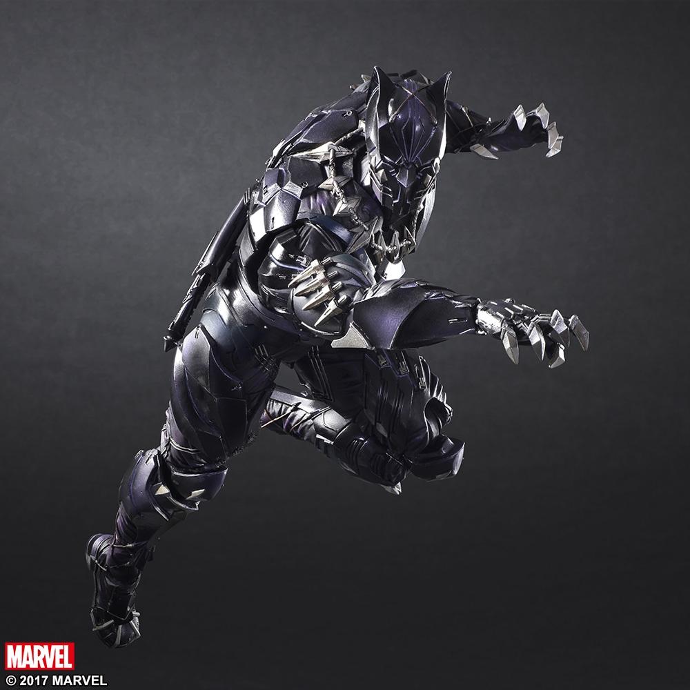 From Square Enix. Marvel's iconic Black Panther joins the Variant Play Arts Kai team from Enix! In a more armored-up version of his outfit, he stands a mighty 11" tall and is fully posable for maximum action! T'Challa comes with six extra interchangeable hands, two kunai-like bladed weapons, and a special base for display.