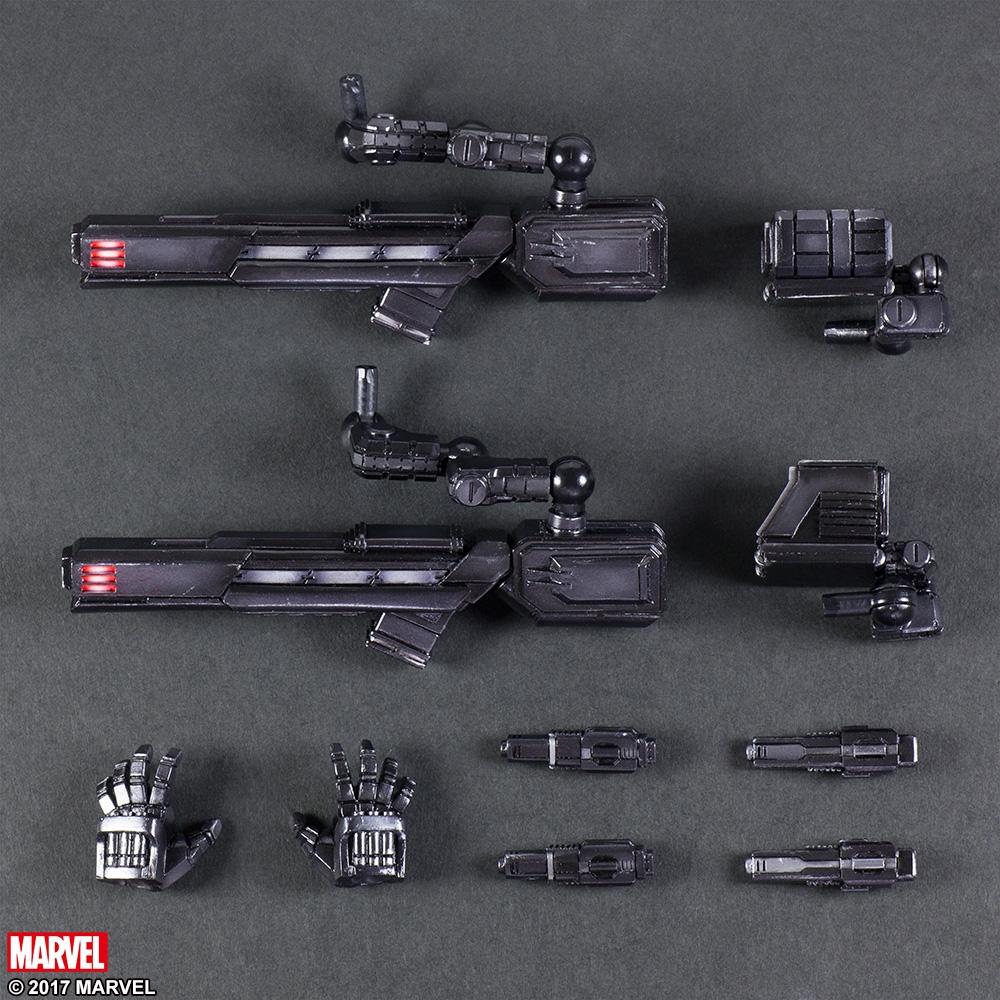Lieutenant James “Rhodey” Rhodes of the United States Marine Corps is the best friend of Tony Stark, also known as Iron Man. When James dons his mechanized suit, designed by Tony and similar in its look to Tony’s Iron Man suit, he becomes War Machine! As one would expect from a top class military man, he is equipped with various powerful firearms. In this Marvel Universe VARIANT PLAY ARTS KAI, he comes with various types of exchangeable weapon parts. His weapons can be equipped onto both of his shoulders and onto the left and right of his back with secure ratcheted jointing, allowing for various ways to mount his weapons.