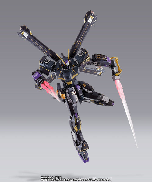 From the Mobile Suit Crossbone Gundam manga series, Crossbone Gundam X-2 enters the Metal Build line by Bandai. Made of die-cast and plastic, Crossbone Gundam X-2 stands over 6.50 inches tall and includes a multitude of weapons and accessories, including his battle-damaged cape!