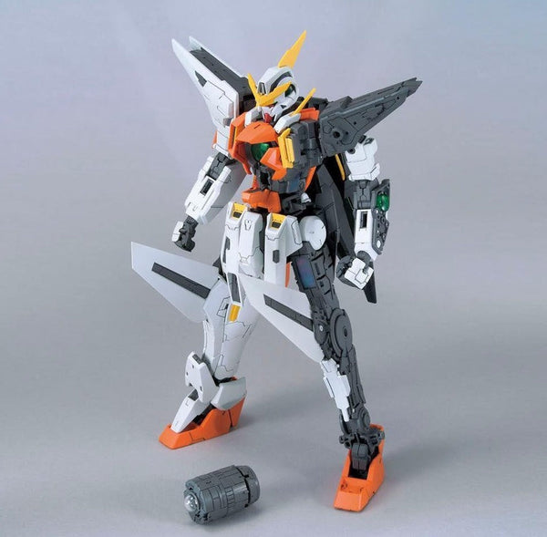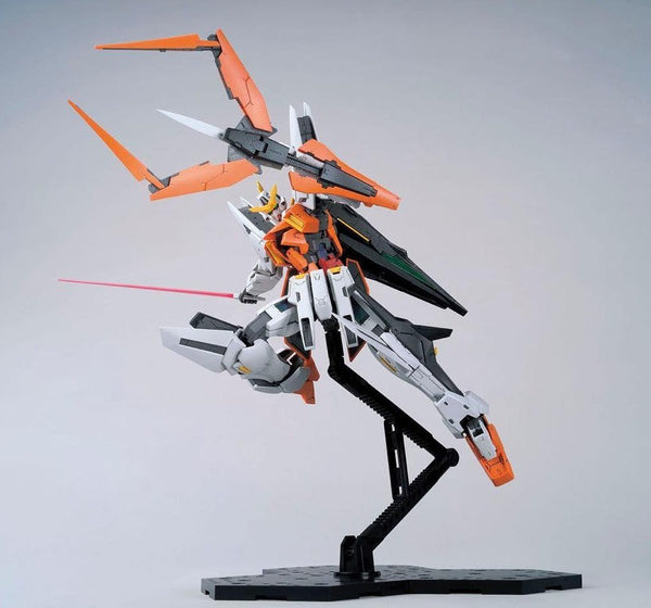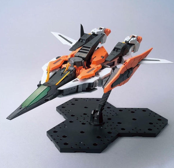 The transforming Gundam from Gundam 00 S1, Kyrios, joins Dynames in the MG lineup based on new illustrations by its creator Takayuki Yanase! Transformation to MA Mode is made possible by new locking tabs throughout the body and the new GN Frame structure introduced in the MG Dynames. Hands can be stowed away as-is on the mode during transformation and the wireless grip can be switched between the GN Beam submachine Gun and GN Hand Missile Unit just like in the TV Anime! It also includes GN Shield with unfolding gimmick and spike.