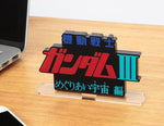The Mobile Suit Gundam III: Encounters in Space title is now a logo display stand! This acyrlic display stand works well as a stand alone item or paired with any completed model or figure seen in the movie.