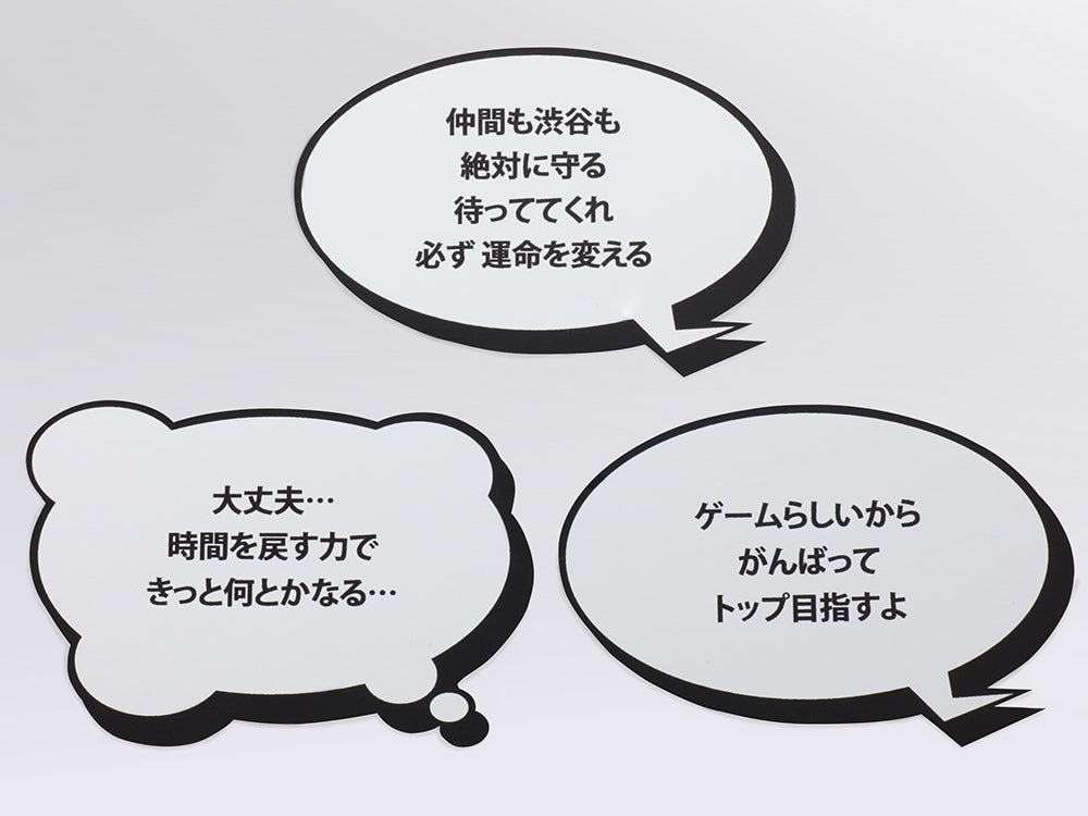 The figure comes with a display stand and various parts that allow him to reenact scenes from the game; accessories like unique text bubbles, 3 face parts with dynamic facial expressions, and multiple hand parts, including one holding a smartphone and coat parts with pocket openings into which Rindo can stick his hands.