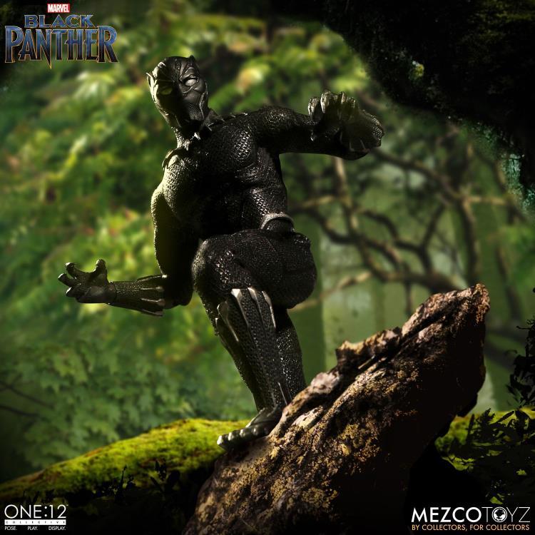 Direct from the eagerly anticipated and groundbreaking feature film, Mezco welcomes Black Panther into the One:12 Collective. Intricately designed with a cloth outfit recreating that of King T’Challa’s Vibranium suit, authentically detailed accessories replicating those seen in the movie, and the likeness of actor Chadwick Boseman.