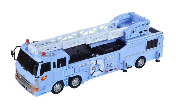 Ignis can convert modes between bot, firetruck, and torso of Maximus Pro using his own components. He can also become a repair bay. He stands at 10" in bot mode with excellent poseability that matches the entire Perfection Series line. All first run buyers will receive a bonus head plus a roaring face.