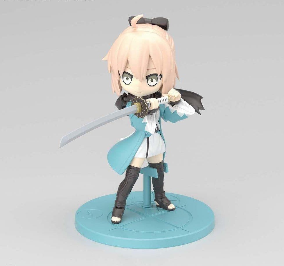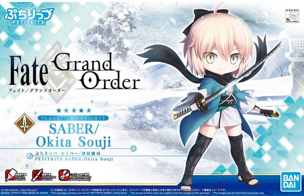 The Saber class servant Okita Souji from "Fate Grand Order" joins the Petitrits line! Okita features construction and articulation that allows for cute standing poses that don't interrupt the sculpt of the figure and simple enough for even beginner modelers to build. Includes Kiku-Ichimonji Norimune sword, scabard, display base, stickers.