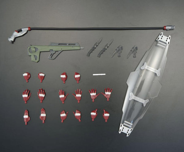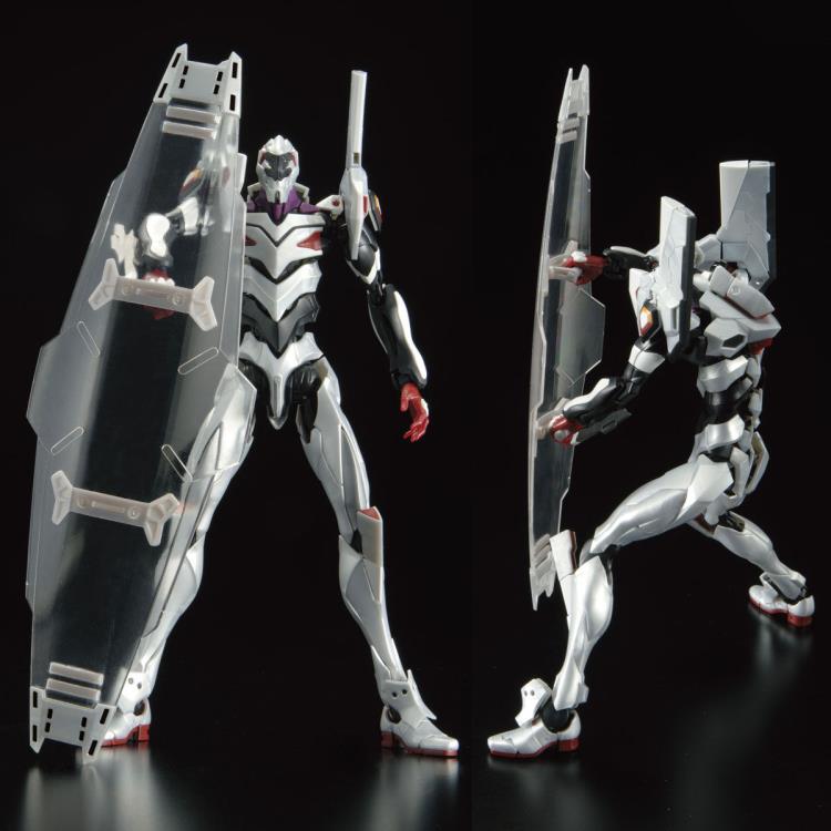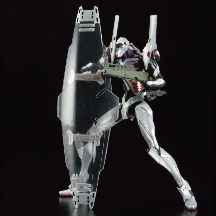 EVA Unit-04 joins the Real Grade model kit series! The characteristic colors have been recreated by color molding, along with a riot shield and blaster that can be held by the EVA Unit.