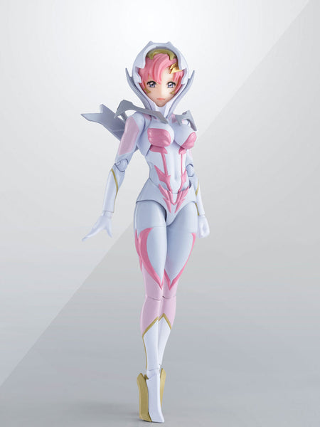 From the "Mobile Suit Gundam Seed Freedom" film, the pilot suit version of Lacus Clyne is now available! The cockpit-style display stand and interchangeable torso parts allow you to pose the figure in a riding pose. The included parts also make it possible to recreate her deployment in various ways!
