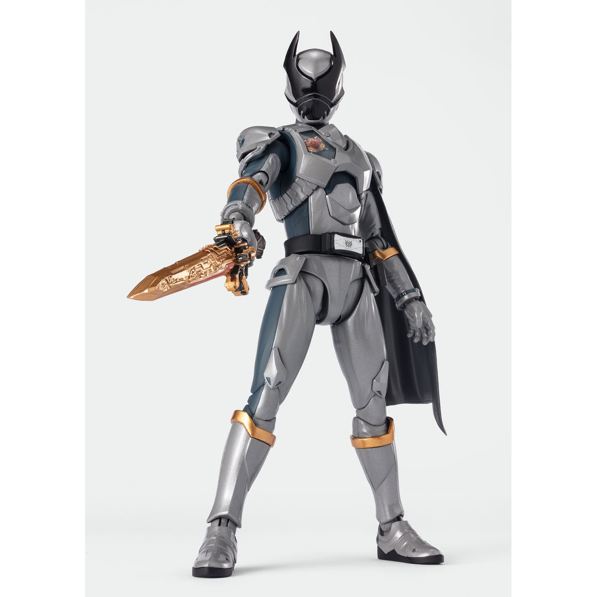 Ohkuwagata Ohger from Ohsama Sentai King-Ohger is now available from S.H.Figuarts! We have reproduced the character in minute detail with variations in the texture of each body part, as well as the chest emblem. The cloak draped from the left shoulder is reproduced with flexible parts, and you can reproduce a variety of poses thanks to the combination of the proportions and mobility. The Ohger Calibur Zero and the Kings Weapon, included as accessories, can be joined and used in the Naginata Mode! The Kings Weapon can also be joined with the Ohger Calibur, an accessory included with S.H.Figuarts Kuwagata Ohger (sold separately)!