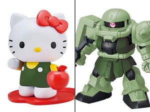 This two-pack features an SD (Super Deformed) version of the Zaku II and an equally-sized Hello Kitty, who can sit and hold her apple on her apple-shaped figure stand.