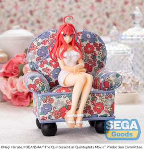 Sega's Premium Perching figure series features a wide variety of characters from different sources sculpted with the ability to "perch", typically in a sitting pose, from shelves and ledges. This time, the version of Itsuki Nakano from The Quintessential Quintuplet's anime film has been recreated as a highly detailed addition to the PM Perching series, with a sculpt that stays true to the character's original design as seen in its respective media.