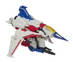 This Studio Series 72 Voyager Class Transformers: Bumblebee-inspired Starscream figure converts from robot to tetrajet mode in 31 steps. Remove backdrop to showcase Starscream in the Cybertron Falls scene. In the Cybertron Falls scene from Transformers: Bumblebee, the Autobot resistance retreats to escape the planet as Cybertron falls under Decepticon control. Starscream and the seekers destroy the Autobot launchpad in an effort the prevent their escape. Pose the figure out with the included Null Ray accessories and imagine recreating this classic movie moment!