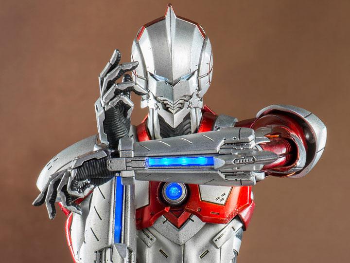 Ultraman features a weathered paint application, and alternate Shinjiro head, and LED lights in the eyes, chest, and spacium blades. This figure requires 8 AG1 button cell batteries (not included).